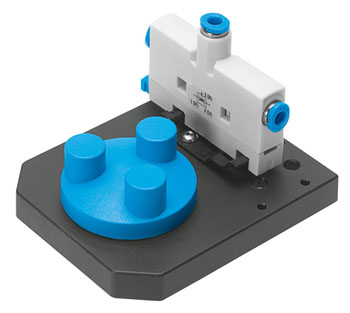 Bei der Vakuumsaugdüse wird mit der von 1 nach 3 strömenden Druckluft durch das Ejektor-Prinzip Vakuum erzeugt. Am Vakuumanschluss 2 kann der Saugnapf angeschlossen werden. Beim Abschalten der Druckluft bei 1 hört der Saugvorgang auf.