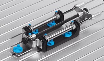 Fluidic muscle can be guided by coupling it mechanically with two double-acting cylinders. It is also possible to apply a load to the muscle via the cylinders.
