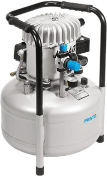 The compressed air supply provides the needed compressed air. It contains a pressure control valve that can be adjusted to output the desired operating pressure.