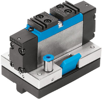 This valve is derived from a configurable 5/n way valve. You find this valve in the component library Frequently used Way Valves, under the Library menu.