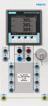 The wattmeter is used to measure effective power in electric circuits. It’s equipped with a current path (terminals 1 and 3) and a voltage path (terminals 4 and 2). The wattmeter multiplies measured values for voltage and current with each other and displays the result. Connect the measuring instrument’s current path like an ammeter and the voltage path like a voltmeter.