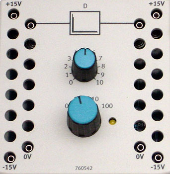 The D element is a transfer element used in closed-loop control technology with a derivative response characteristic. The output signal/potential at output 2 depends on the rate of change of the input signal/potential at input 1. The D element is modelled as an actual D element in this case, also known as a derivative-action element, with first-order time delay, because an ideal D element is technically infeasible. Derivative-action coefficient Kd and delay time T can be adjusted. In order to keep circuit wiring as straightforward as possible, required earthing (0 V) is not led out as a terminal, but rather wired internally.