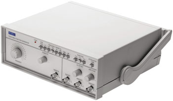 The function generator is a voltage source that can create constant, rectangle, sine and triangle signals. The voltage range is restricted to -10 V to +10 V. The frequency, the amplitude and the Y-offset of the signal can be set within this range.